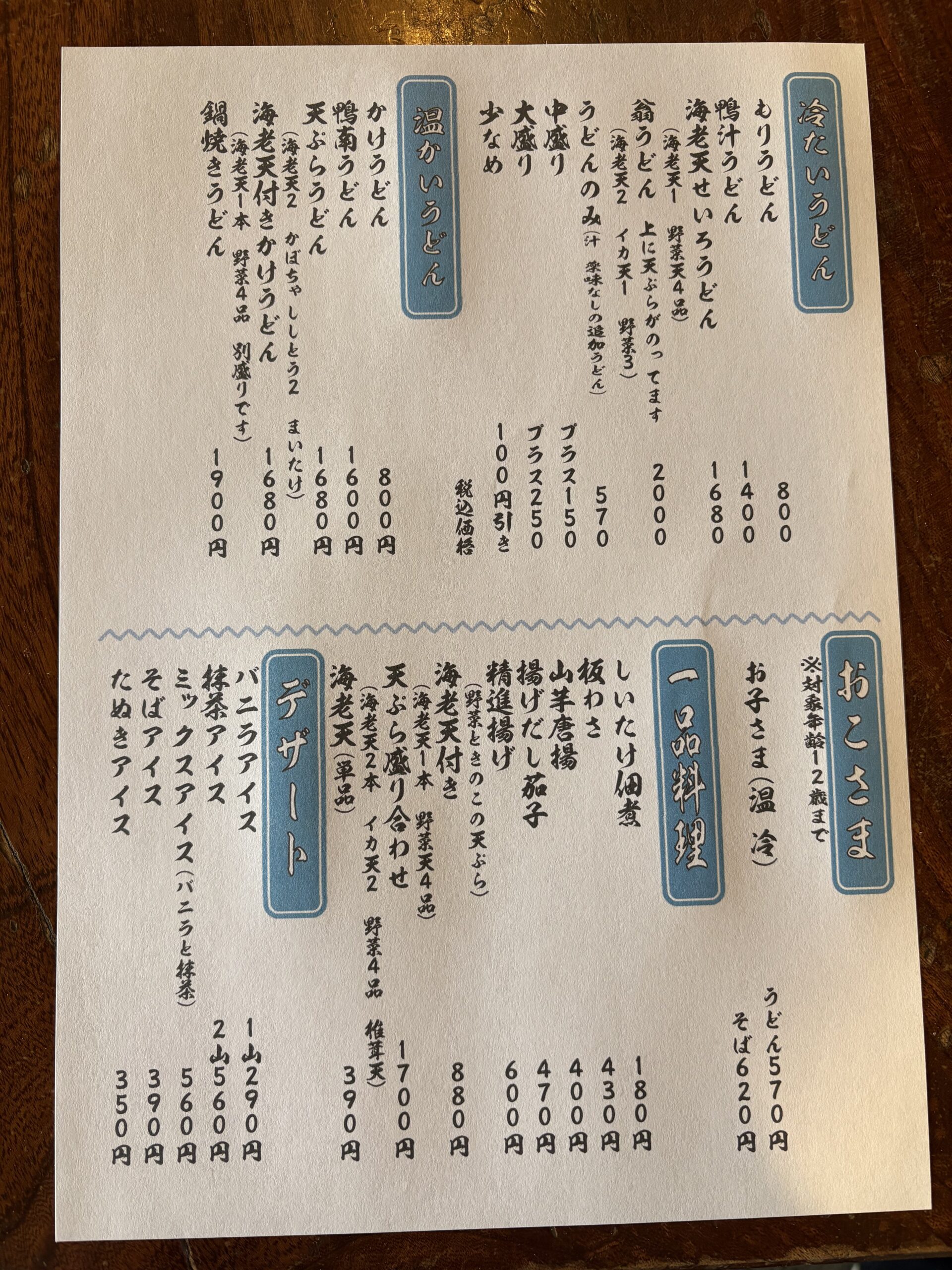 お品書き
